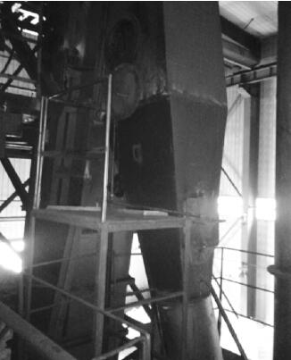 (1)溜槽结构。溜槽为方形溜槽,与斗式提升机连接处有一 约180 mm 的水平段,烘干后的钼精矿经过斗式提升机输送落 料点正好在水平段,使物料出料速度几乎为零,致使溜槽水平段 积料严重。